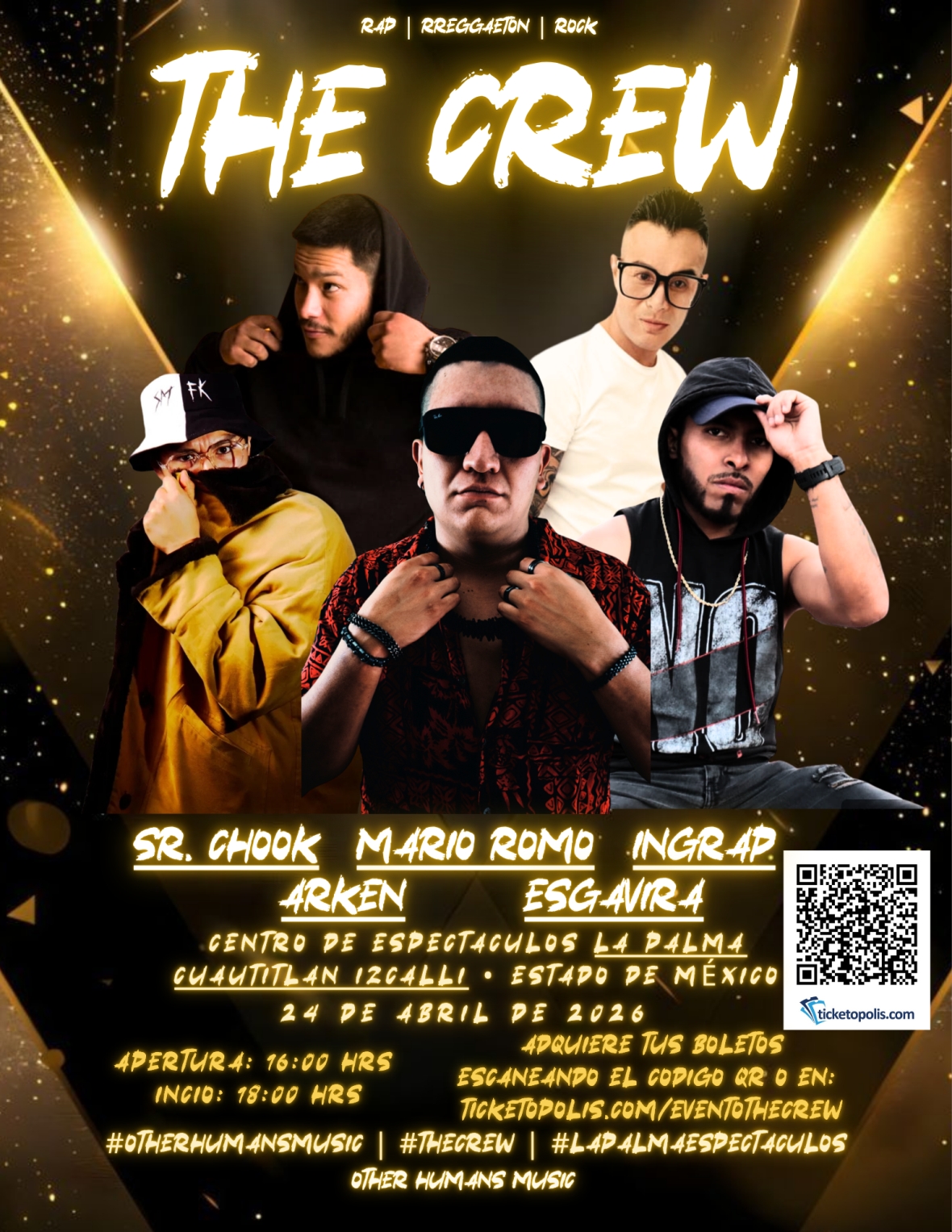 Sumérgete en una noche de música pluricultural con la presentación de The Crew en el Centro de Espectáculos La Palma en Cuautitlán Izcalli, Estado de México.