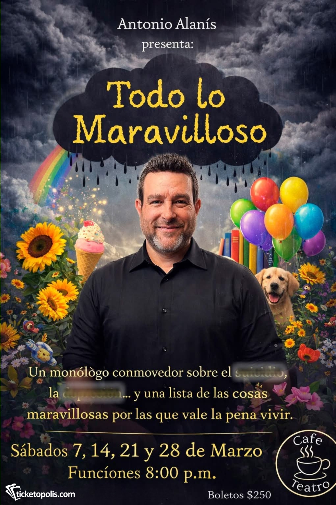 Sinopsis:“Todo lo Maravilloso ”, es una interesante experiencia de teatro inmersivo. La historia se centra en un individuo que enumera una lista con todo lo maravilloso que hay en el mundo, aquello por lo que vale la pena vivir. Una obra interactiva que aborda temas como la salud mental, la depresión y el suicidio, involucrando activamente al público de una forma profundamente personal y emotiva.
